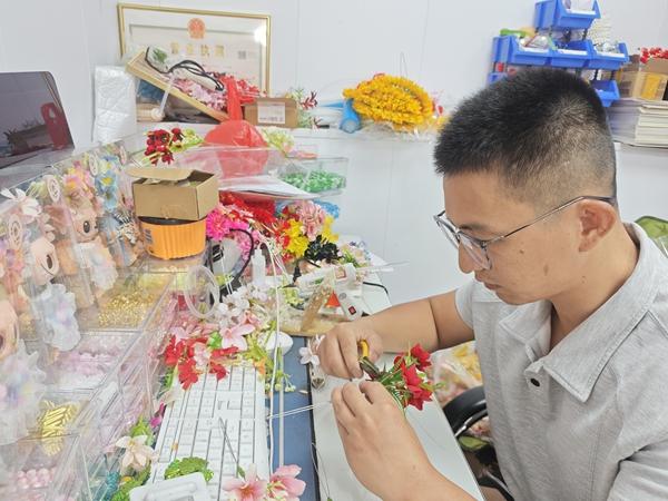 现在,吴培超把重心放在仿真花头饰的推陈出新上,不断推出新款,积累客源。他也十分重视客户体验,他所开的簪花围店,除了簪花还有洗头和掏耳服务。