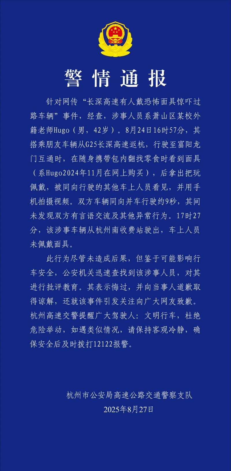 杭州高速交警微信公号  |  2025-08-27 08:16