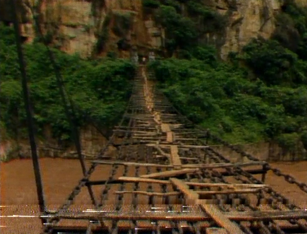 人力锻铁链、木铺桥面