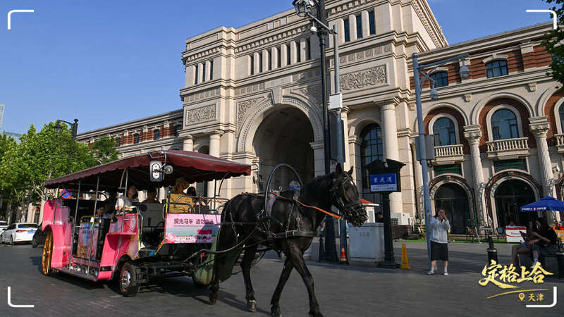 市民游客乘坐马车游览天津五大道文化旅游区。
