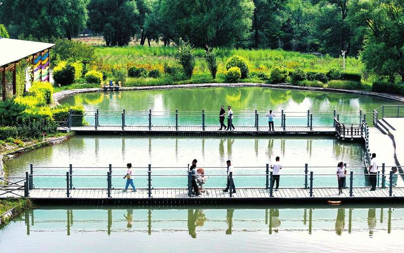 8月15日,游人在灵丘县车河村“清水鱼庄”游玩。在此开民宿的村民李小川开心地说:“我从外地回来返乡创业,如今乐田居民宿收益比在外地打工挣钱。”