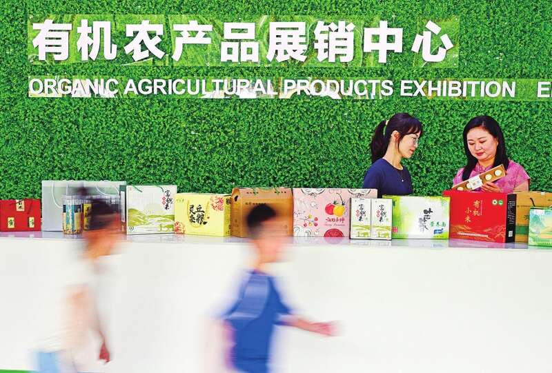 游客在有机商品展示厅内选购。