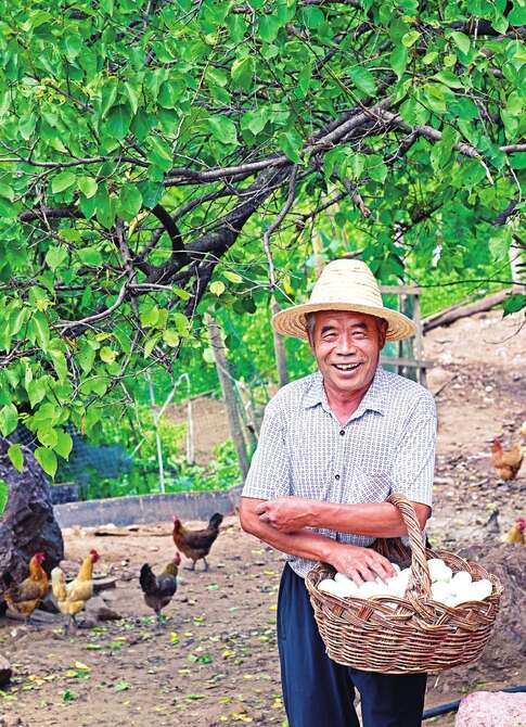 村民在捡拾有机鸡蛋。