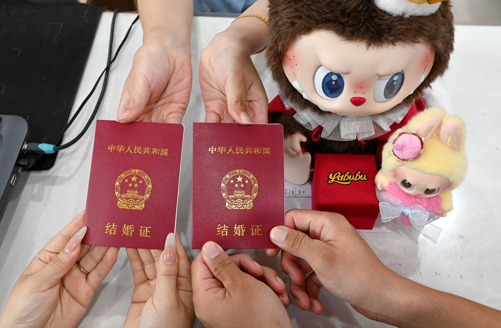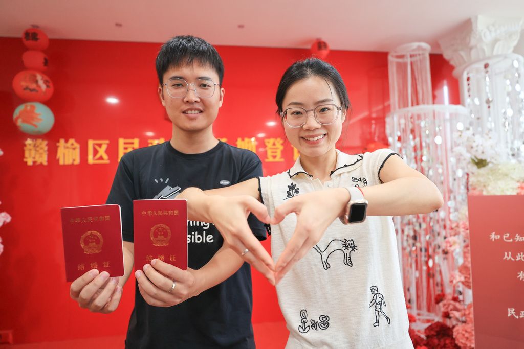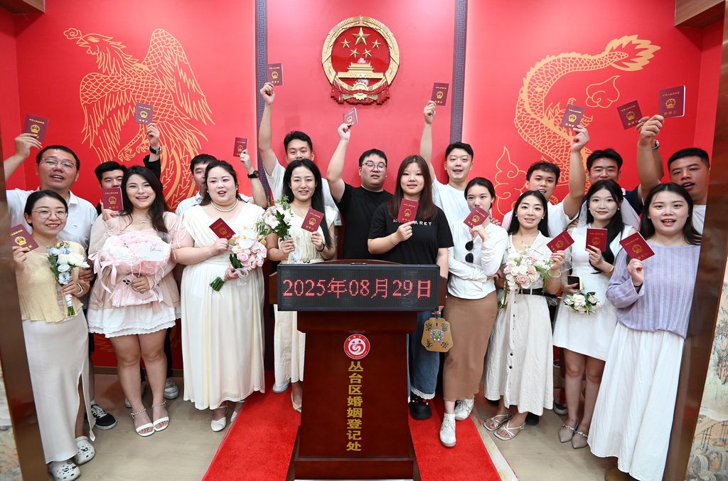2025年8月29日,正值“七夕”,各地情侣扎堆办理婚姻登记。这也是婚姻登记实现“全国通办”后迎来的首个七夕节,许多新人选择在这一天登记结婚,让这个美好的节日为爱情增添浪漫和喜气。