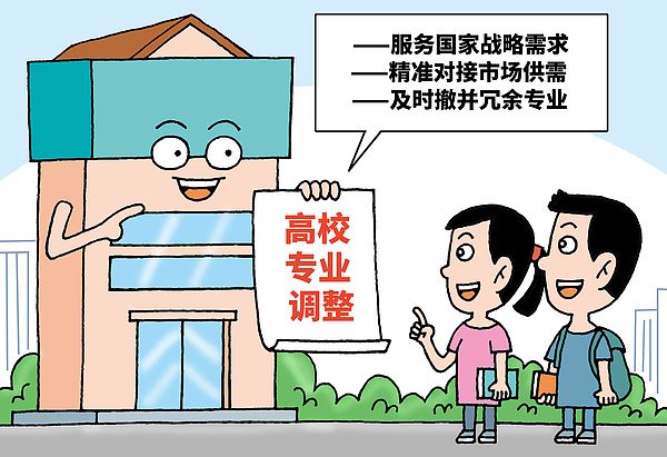 一方面,要以国之所需、民之所盼为调整方向,更加聚焦国家战略需求和社会经济发展需要。比如,今年《普通高等学校本科专业目录》增设“人工智能教育”等29种本科新专业,教育部首次建立战略急需专业超常设置机制,为“低空技术与工程”专业的设置开辟绿色通道。