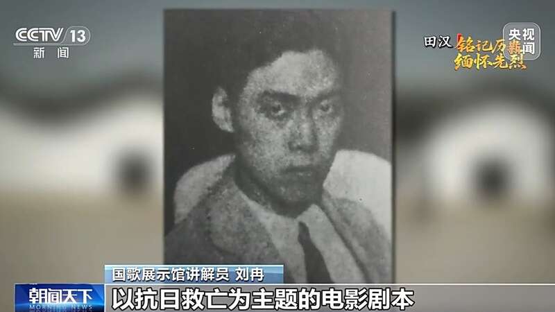 国歌展示馆讲解员刘冉:东北沦陷后,“不做亡国奴”的呼声在社会中响起。1934年春,田汉决定写一个以抗日救亡为主题的电影剧本。在他刚完成一个故事梗概和一首主题歌的歌词时,就被国民党反动派逮捕入狱。另一位共产党员、戏剧家夏衍,接手将这个故事改写成了电影剧本。