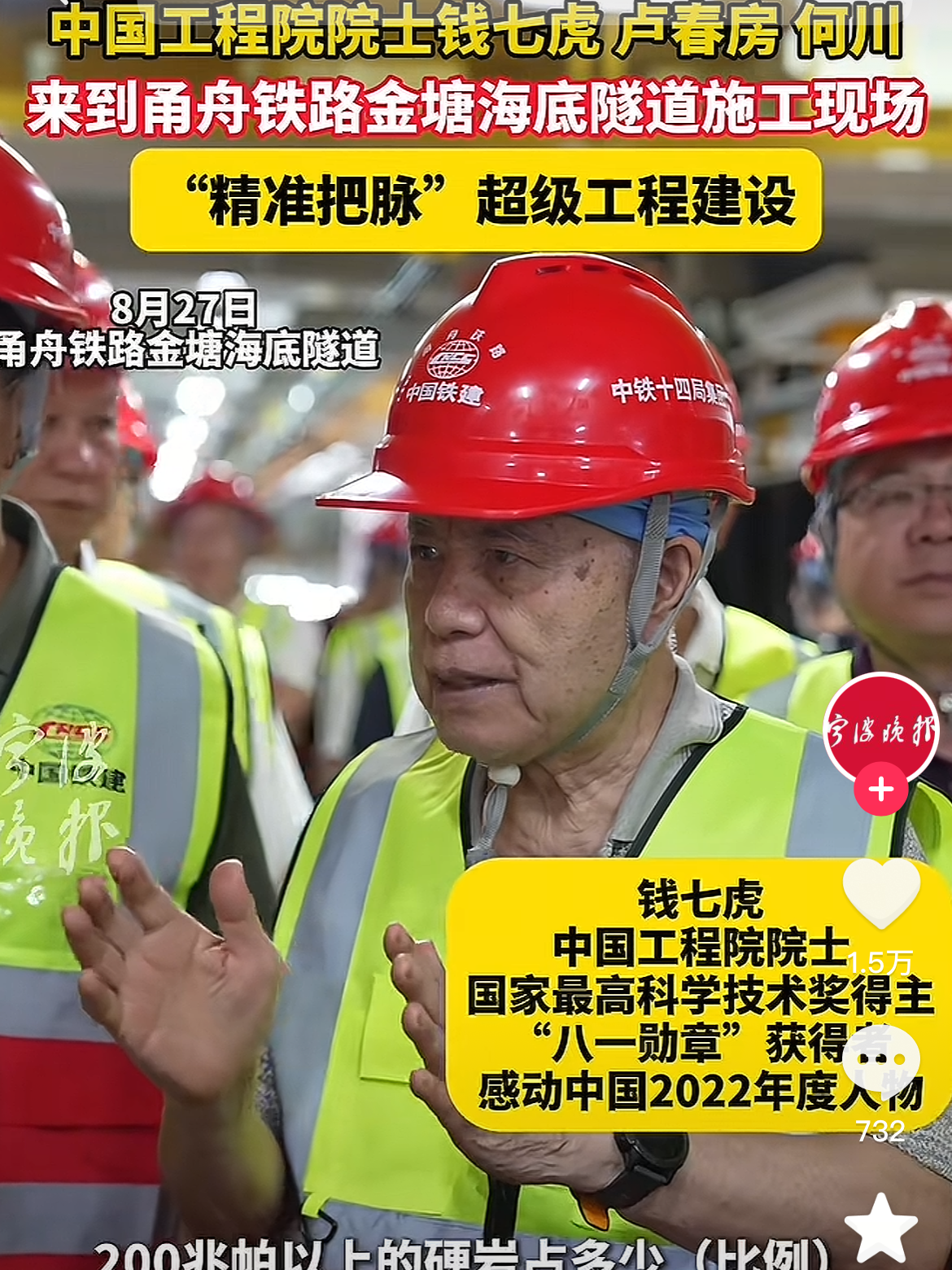 值得一提的是,据公开报道显示,自项目开工以来,钱七虎院士多次现场把脉问诊、定向护航。作为国家最高科学技术奖获得者,他以88岁高龄奔走一线、传道解惑,甘作工程建设的“铺路石”与“点灯人”。从南京地铁抢险到海底隧道论证,从捐资助学到亲临工地指导,他用行动诠释何谓“把论文写在祖国大地上”。我们看到,科学家精神从来不是一句空话,它扎根在泥土中、熔铸在工程里、体现在担当处。这样的国之脊梁,令人敬仰,也照亮我们每个人价值追寻的方向。