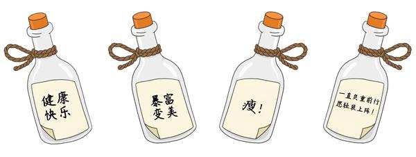 本版漂流瓶矢量图及标题字体由AI生成,漂流瓶中的文字来源于部分减重营学员的心愿便签