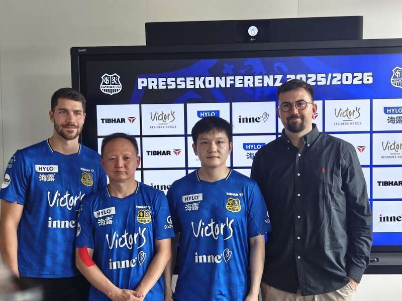 On August 27th, the Saarbrücken club held its first press conference for the 2025-2026 season of the Tischtennis Bundesliga. Chinese player Fan Zhendong appeared in his new team uniform. According to the schedule, Fan Zhendong's debut will take place on August 31st local time (early morning of September 1st Beijing time). (Photo/Xinhua News Agency)