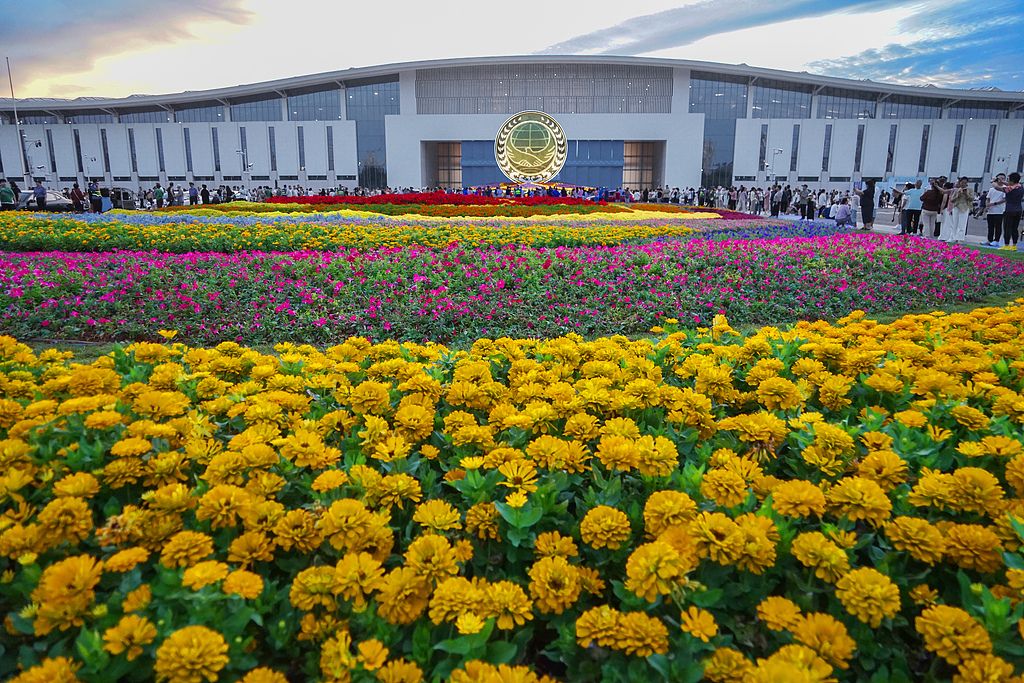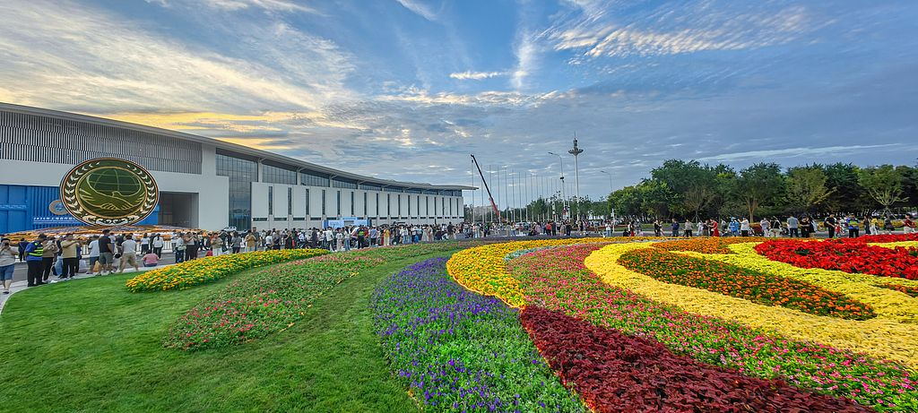 2025年8月28日,天津梅江国际会展中心花团锦簇,灯火璀璨,喜迎上合盛会。2025年上海合作组织峰会将于8月31日至9月1日在天津举行。