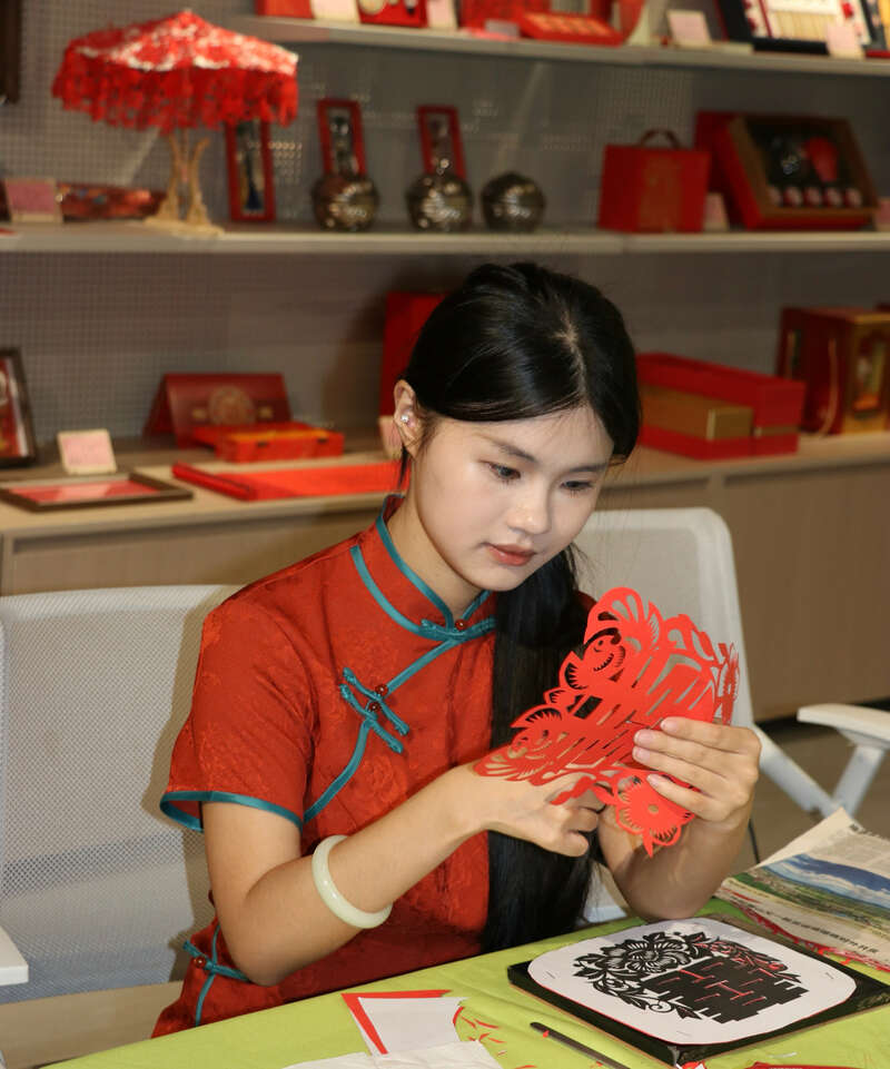 青年在体验剪纸。 主办方/供图