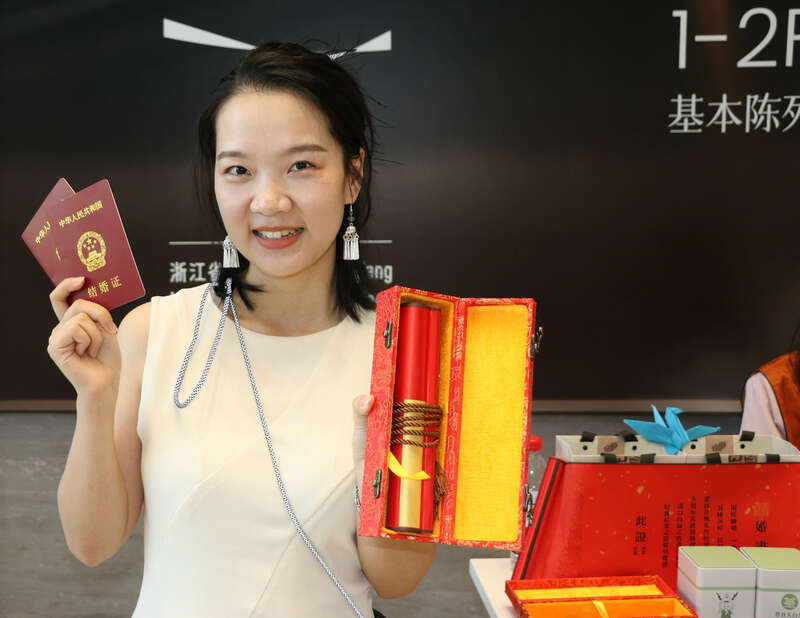 青年凭结婚证领取非遗婚书。主办方/供图