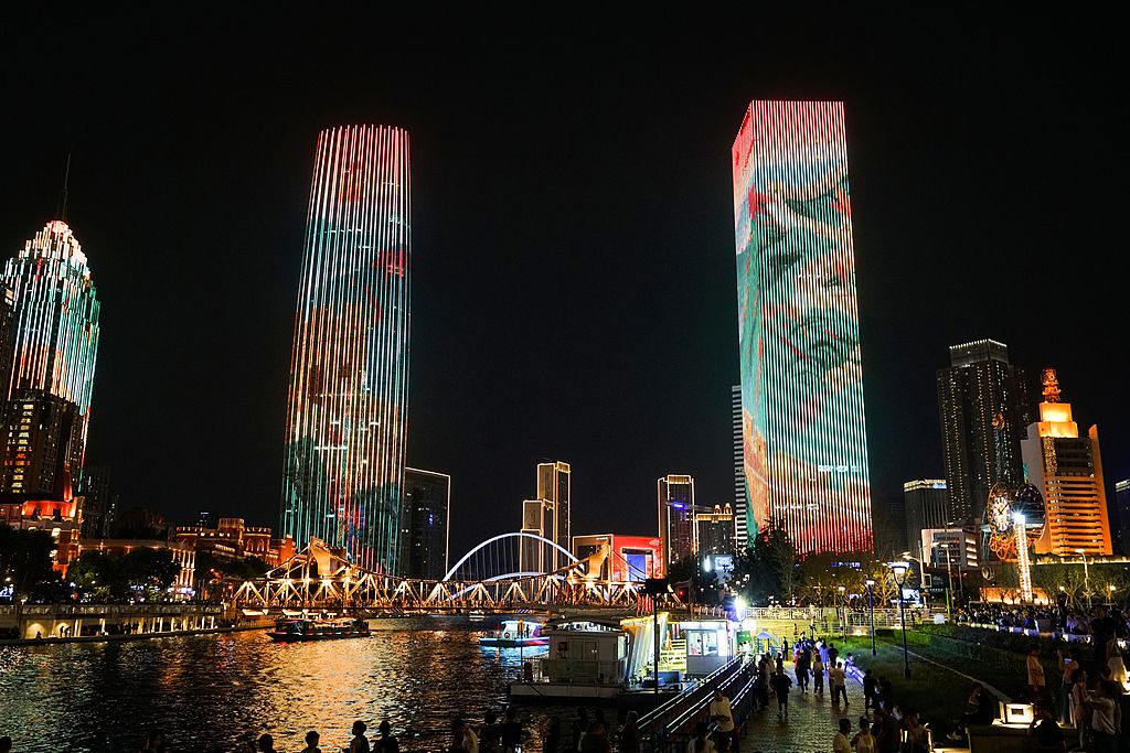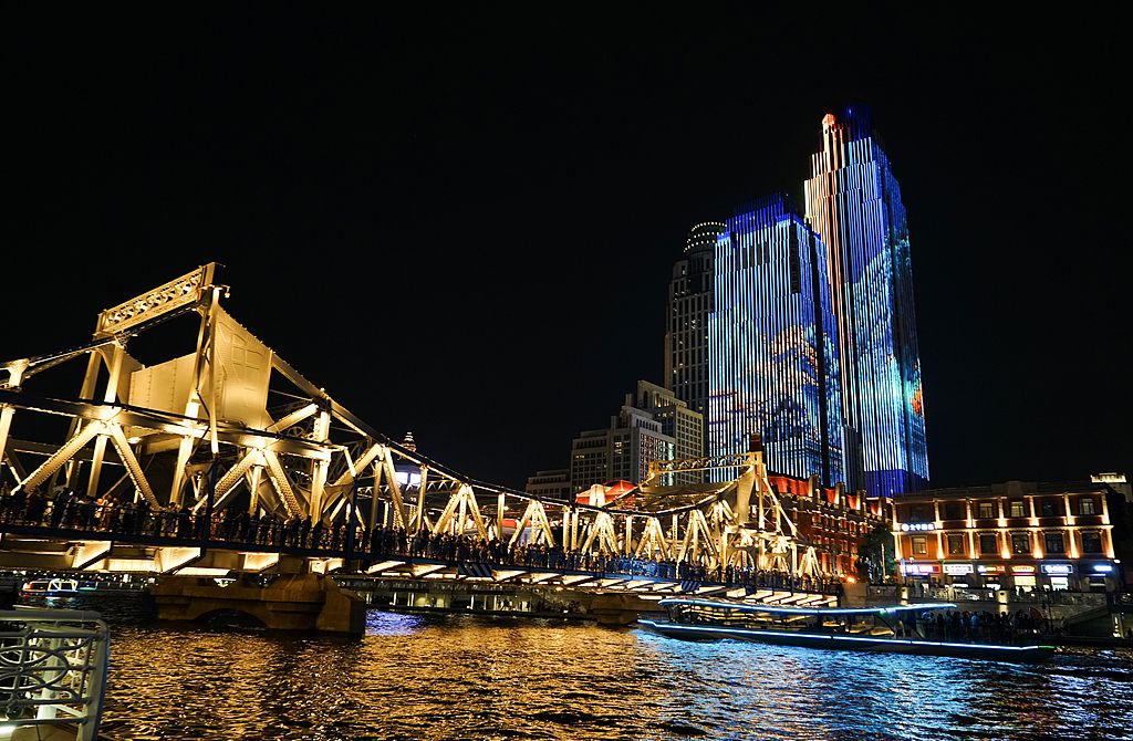 迎上合组织天津峰会 “夜津城”灯光璀璨
