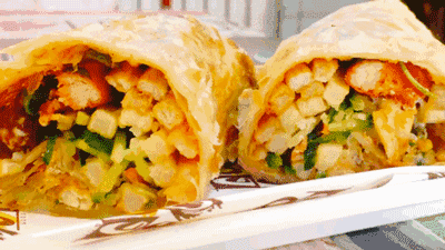 煎饼不能加肠,但大饼可以夹一切。闲不住的天津人,把炒土豆丝、千张丝、卤肉等食材放进大饼里,最终有了“大饼卷一切”。