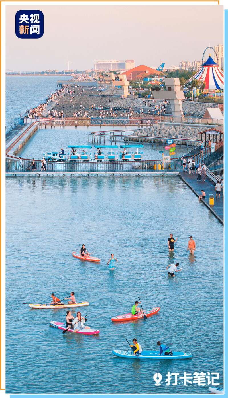 天津滨海新区有大大小小的公园:可以赶海的东疆亲海公园、拥有观海步道的东堤公园、适合露营的南湾公园,都能近距离拥抱碧海蓝天。