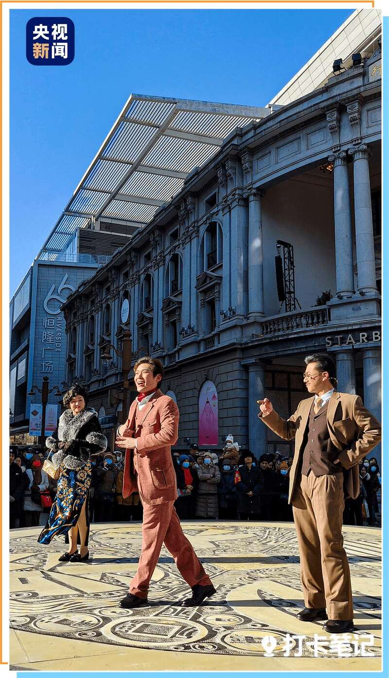 五大道不远处的和平路商业街是近代天津繁华的见证。这里话剧《日出》实景上演,人们跨越百年回味天津往事与风土人情。