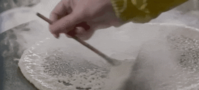 天津人对煎饼馃子要求十分严格:煎饼里只加果子或者果篦儿,必须用绿豆面来摊,磕上鸡蛋、撒上葱花、刷上酱,最后把果篦儿对折夹中间。咬一口外软里脆,满口鲜香热乎。