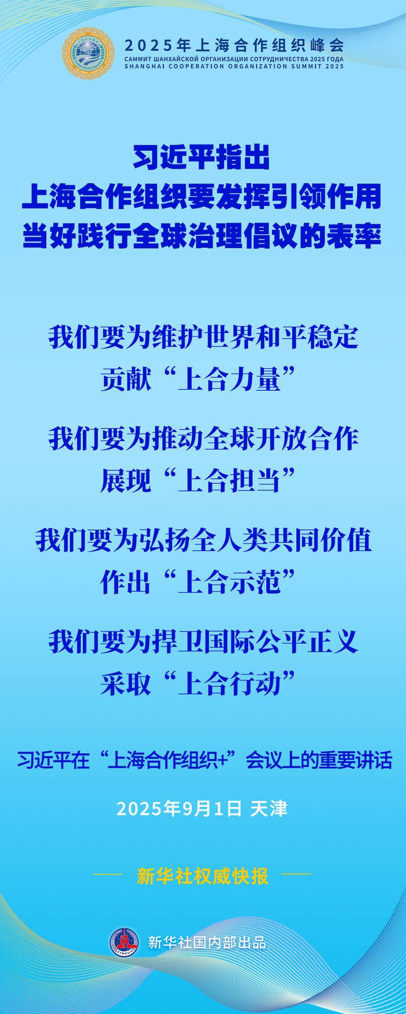 国家主席习近平在“上海合作组织+”会议上指出,面对加速演进的世界百年未有之大变局,上海合作组织要发挥引领作用,当好践行全球治理倡议的表率。