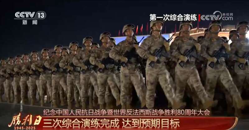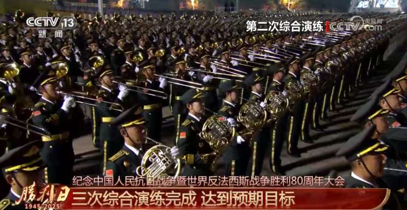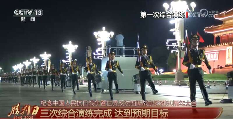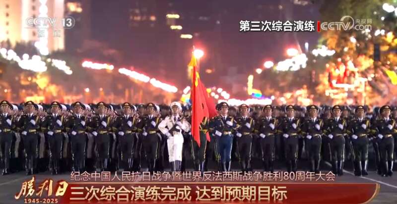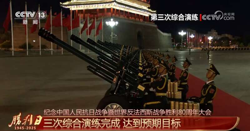 纪念中国人民抗日战争暨世界反法西斯战争胜利80周年大会三次综合演练的时间,选在了8月第二、三、四周的周六晚上到周日凌晨举行。