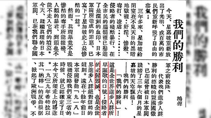 正如《星洲日报》80年前报道中所言:“今天,全中华民族的解放战争、全世界进步人群维护真理的正义战争,已得到了光辉的胜利!这是世界史上最跃进的一瞬、未来人类生活伟大转折的一天。”(完)