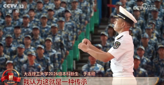 大连理工大学2025级本科新生于丰硕称:“当我看到受阅官兵步履铿锵、整齐划一地从天安门城楼前走过,抗战老兵在城楼上深情注视的时候,我认为这就是一种传承。进入新时代,振兴中华、增强综合国力的接力棒已然传到吾辈青年肩头。”