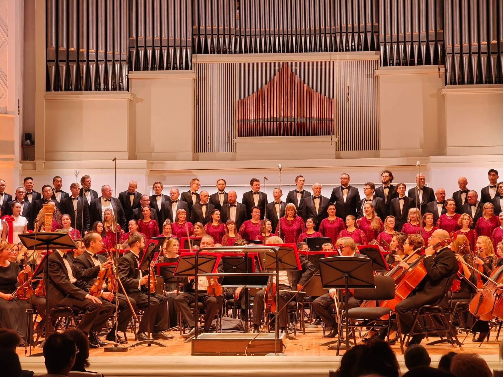 9月3日,俄罗斯莫斯科,为纪念中国人民抗日战争暨世界反法西斯战争胜利80周年和冼星海诞辰120周年,《黄河大合唱》专场音乐会在莫斯科柴可夫斯基音乐厅举行。中国驻俄罗斯大使馆公使常旭红在现场致辞。中青报·中青网驻俄罗斯记者 赵祺/摄