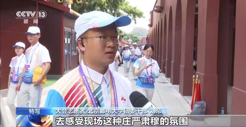 大会志愿者 北京邮电大学团委干部 刘帝:我们是在红墙外去聆听声音,去感受现场这种庄严肃穆的氛围,去看到我们上空飞过那些我们国家崭新的武器装备,与祖国同行同向的这种感觉。