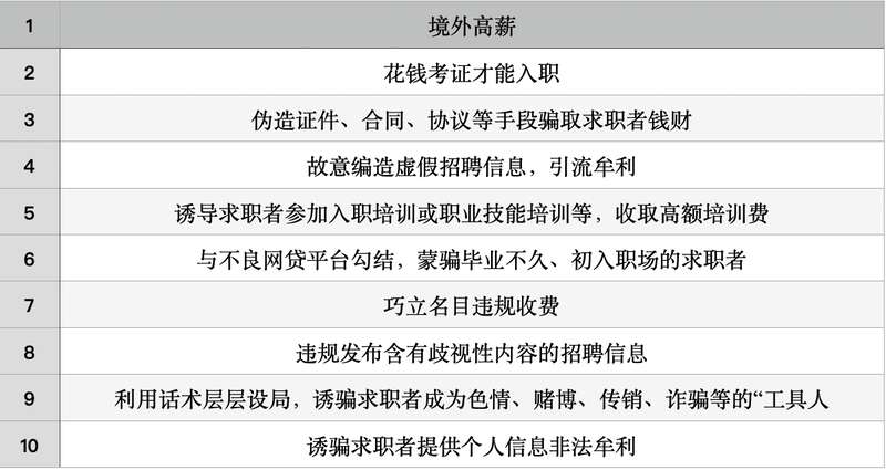 5日,人社部就业促进司和公安部刑侦局共同发布重要提示称,每逢毕业季和寒暑假期间总有一些陷阱落到了社会阅历不深的高中生和大学生求职者头上。“出国工作,轻轻松松月入过万”“路费全包、免费住宿、高额提成”“赴他国挣大钱”……那些“诱惑多多”的“境外高薪”招聘信息,背后可能是犯罪团伙的诱饵。