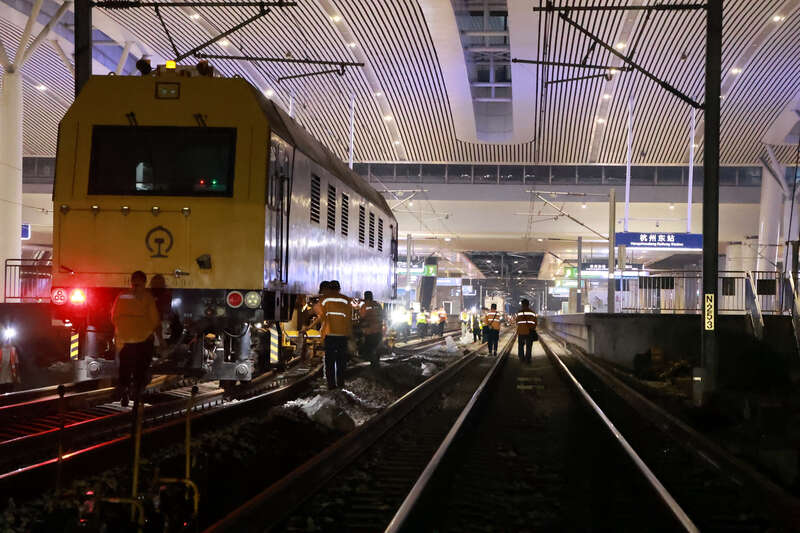 清晨5时,经过铁路工人紧张的“会战”,杭州东站施工区段线路轨距、水平和扣件压力等指标全部符合验收标准。对讲机中,传来“各项数据正常,可以开通线路”的指令。