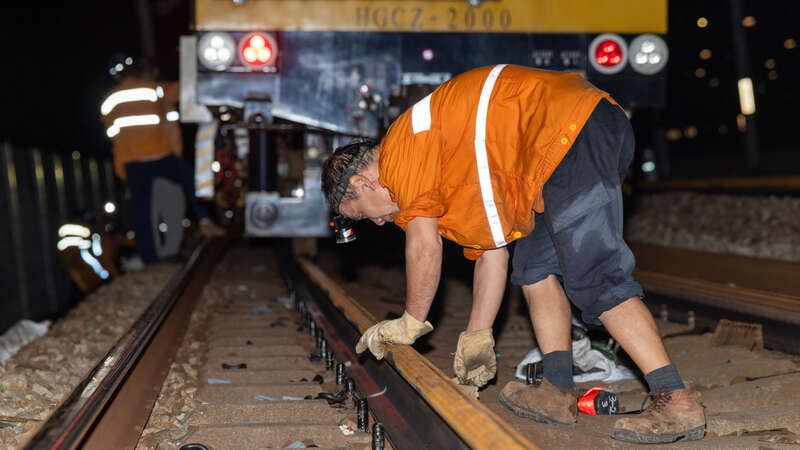 “天窗命令已下达,可以开始作业。”随着对讲机内传来的指令,百余名作业人员身着橙黄色作业服,头灯闪烁,手持工具到达施工地段。