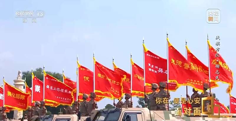 80面荣誉战旗分别来自抗战时期八路军、新四军、东北抗联、华南游击队等授称单位,由所在单位官兵擎旗受阅,寓意着伟大的抗战精神接续传承。