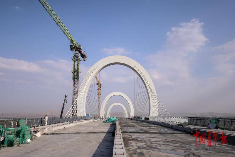 9月8日,新疆伊宁,建设中的伊犁河三桥。伊犁河是滋养伊犁河谷两岸的“母亲河”,20世纪70年代,伊犁河一桥建成。截至目前,伊犁河上已建成8座功能互补的桥梁,共同构建起覆盖主要区域的跨河交通网络。其中,伊犁河三桥的建设,核心目的是打通伊宁园区与察布查尔锡伯自治县之间的关键交通节点,同时打造一座集交通功能与文化内涵于一体的“城市新地标”。目前,伊犁河三桥主桥已成功合龙,整体工程处于施工收尾阶段,计划9月30日建成通车。中青报·中青网记者 曲俊燕/摄