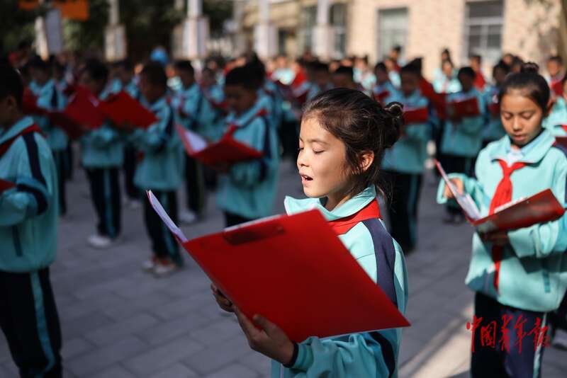 9月8日,新疆伊宁巴彦岱镇巴彦岱村,小学生们在“王蒙书屋”内朗诵诗歌。巴彦岱镇依托王蒙书屋构建校地协同育人机制,通过与辖区5所幼儿园、6所小学共建“行走的思政课堂”,每天1小时在王蒙书屋开展阅读活动。书屋自2013年免费开放以来,不仅成为本地农牧民和中小学生汲取知识的“文化粮仓”,也吸引了来自全疆乃至全国各地的游客。当代著名作家、文化部原部长王蒙曾在20世纪60年代下放新疆,在伊犁巴彦岱工作了6年,半个世纪后,这股文学之风仍在深刻影响当地人和慕名前来的文学爱好者。中青报·中青网记者 曲俊燕/摄