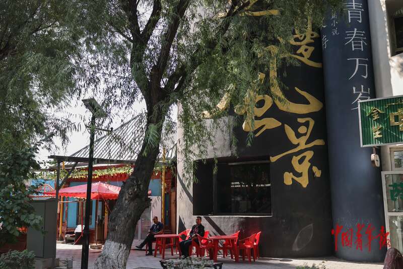 9月8日,新疆伊宁巴彦岱镇巴彦岱村,街头建筑外立面上充满文学元素。中青报·中青网记者 曲俊燕/摄