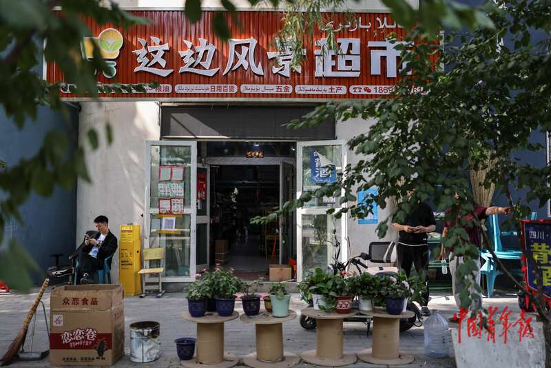 9月8日,新疆伊宁巴彦岱镇巴彦岱村,一家超市以王蒙的长篇小说《这边风景》命名。《这边风景》初创于1974-1978年间,以新疆农村生活为背景,反映了汉族和维吾尔族在特殊历史背景下的真实生活,以及两族人民的相互理解与关爱。这部作品在2015年获第九届茅盾文学奖。中青报·中青网记者 曲俊燕/摄