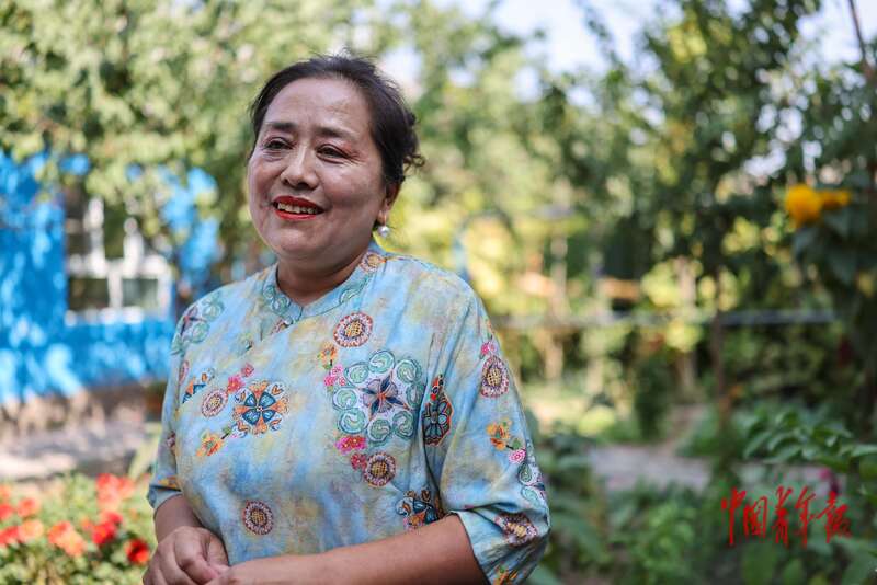 9月8日,新疆伊宁巴彦岱镇巴彦岱村,民宿经营者马燕在自家民宿“云花居”中。她介绍道,近年来,越来越多的游客是读过王蒙的作品后慕名来到巴彦岱村,在“王蒙书屋”参观研学。夏季旅游高峰期时,她家的民宿几乎是满房的状态。中青报·中青网记者 曲俊燕/摄