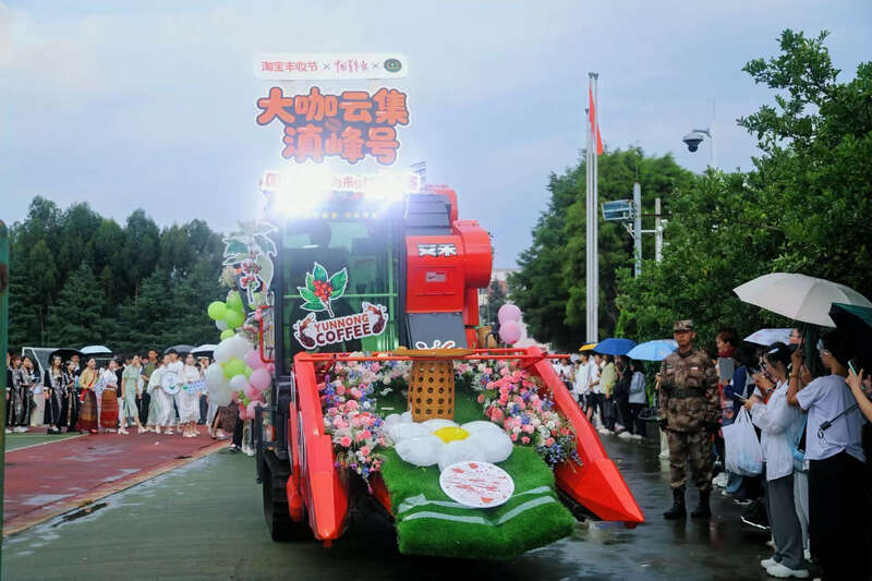 活动现场,“大咖云集—滇峰号”“禾韵丰成—满仓号”“魅力动科—智牧启航号”三辆主题花车亮相。“滇峰号”聚焦咖啡、茶叶等经济作物,还原特色农产品生长场景,彰显云南高原特色农业优势。“满仓号”围绕水稻、玉米等粮食作物展开设计,寓意五谷丰登,传递粮食安全理念;“智牧启航号”展现畜禽养殖中的科技应用,直观呈现智慧农业发展成果。