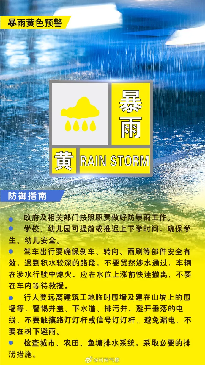 郑州市气象台2025年09月11日04时50分发布暴雨黄色预警信号。