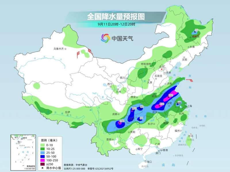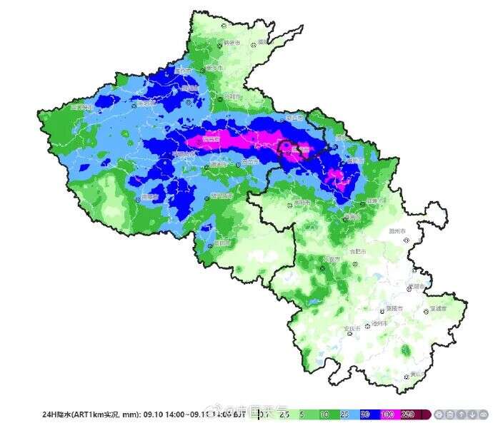 以10日14时至11日14时来统计的话,河南太康183.1毫米、鄢陵136.1毫米、鹿邑119.5毫米,皆打破当地9月日雨量纪录。