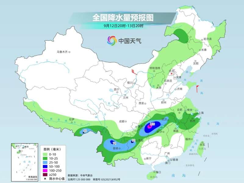 明天夜间到后天,湖北南部、湖南西北部、重庆东南部、贵州中西部、云南西北部等地部分地区有暴雨或大暴雨。