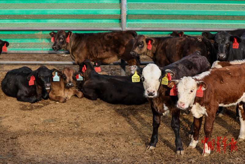 9月10日,新疆博尔塔拉蒙古自治州博乐市,新疆天莱农牧集团股份有限公司养殖场,几个月大的小牛。这里的每头牛都有一个电子耳标,上面有唯一身份辨识码及传感器。中青报·中青网记者 曲俊燕/摄