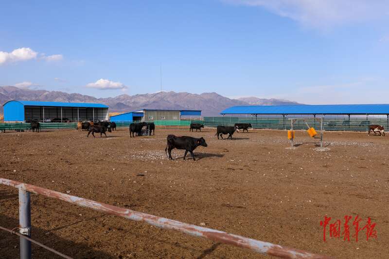9月10日,新疆博尔塔拉蒙古自治州博乐市,新疆天莱农牧集团股份有限公司养殖场上的牛群。该公司养殖场安装了恒温水系统,并有3万亩有机饲草料种植基地,这里的牛一年四季喝的都是温水,吃的是有机饲料。中青报·中青网记者 曲俊燕/摄