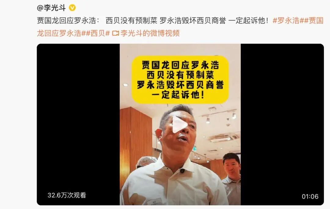 此外,他觉得“罗永浩用‘恶心’形容西贝,感觉有点被砸牌子了,挺受伤的,超出了普通消费者行为,之后将起诉罗永浩”。贾国龙还表示,9月12日起,将在全国所有门店上线“罗永浩菜单”。西贝全国所有门店后厨将对外开放,消费者可以看任何一道菜的制作过程。