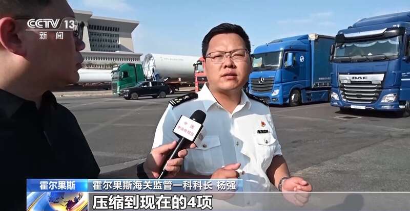 霍尔果斯海关监管一科科长 杨强:通关的作业环节由原来的12项压缩到现在的4项,通关时间由原来的30多小时压缩到现在不足5个小时,通关效率提升80%。