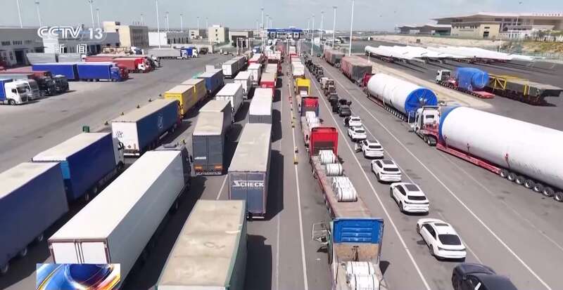 总台央视记者 李厦:这里是霍尔果斯公路口岸,看我身边庞大的车流,不仅有满载跨境包裹的大货车、更是有一眼望不到头的国产新能源车和农用机械车辆,甚至还有长达数十米的风机叶片,这些琳琅满目的中国好货,正在24小时不停歇地从这条黄金大通道驶出国门。
