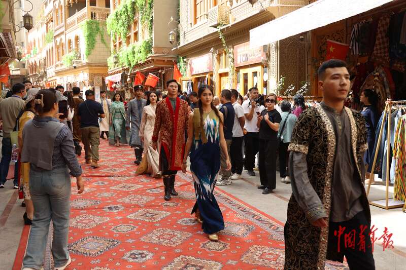 9月12日,新疆和田团城,一场时装秀在街区内举行。中青报·中青网记者 王鑫昕/摄