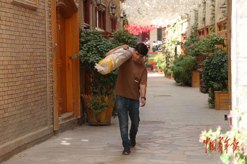 9月12日,新疆和田团城,当地居民在搬运物资。中青报·中青网记者 王鑫昕/摄