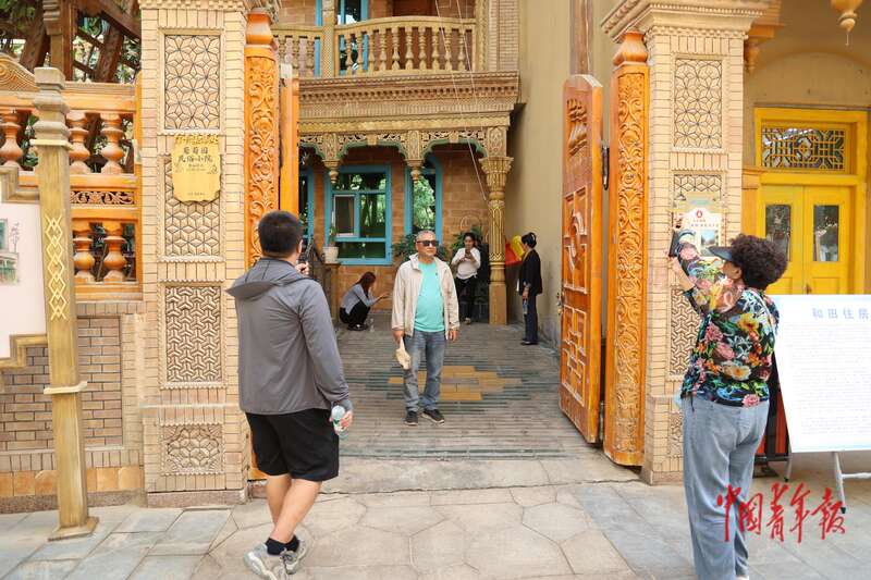 9月12日,新疆和田团城,游客在一家民宿的院子里拍照留念。中青报·中青网记者 王鑫昕/摄