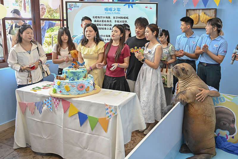 国内首例人工育幼成功太平洋海象幼崽“喔喔”举行“百日庆”活动