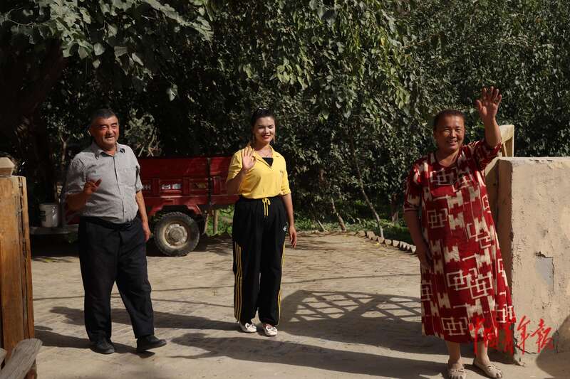 9月13日,新疆和田百和镇稻香村的一个小院里,一家人向来访者道别。中青报·中青网记者 王鑫昕/摄